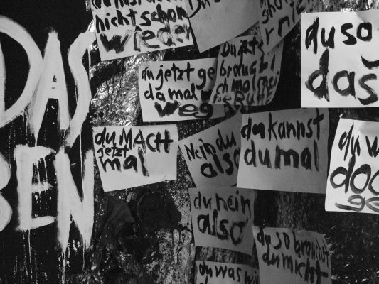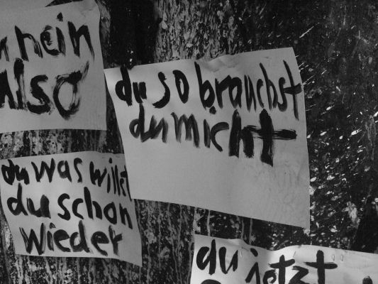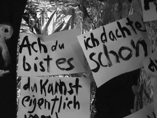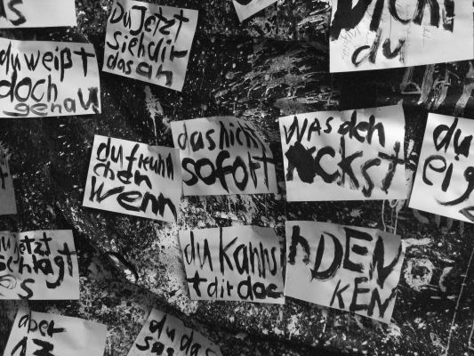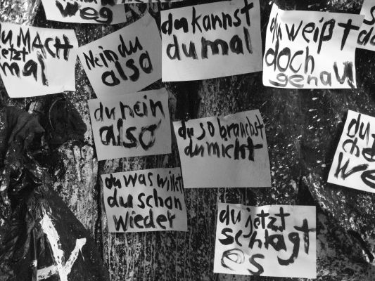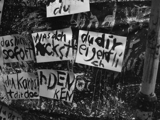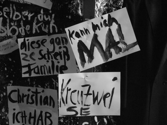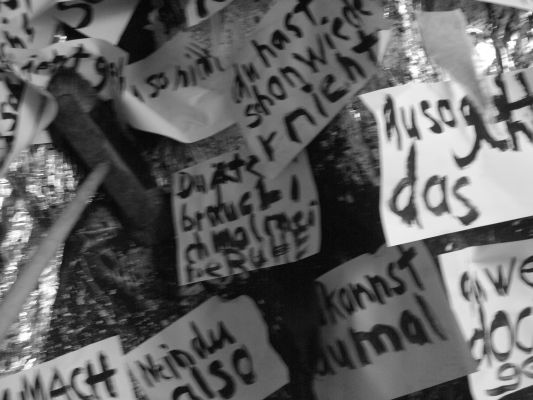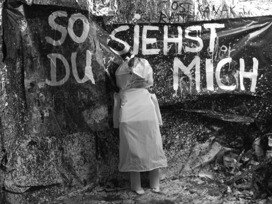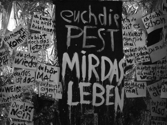 Als Zeichen und Protest gegen die Gewalttätigkeiten gegen meine künstlerische Arbeit die sich zwischen 2018 und 2020 ereignet haben. Daran haben sich Vertreter der deutschen Presse umfangreich beteiligt