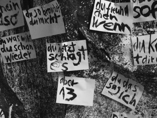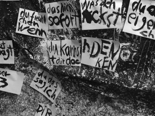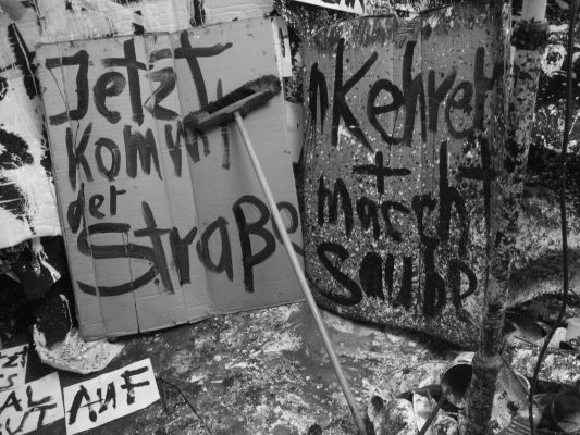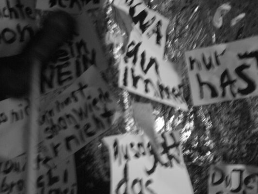 Als Zeichen und Protest gegen die Gewalttätigkeiten gegen meine künstlerische Arbeit die sich zwischen 2018 und 2020 ereignet haben. Daran haben sich Vertreter der deutschen Presse umfangreich beteiligt